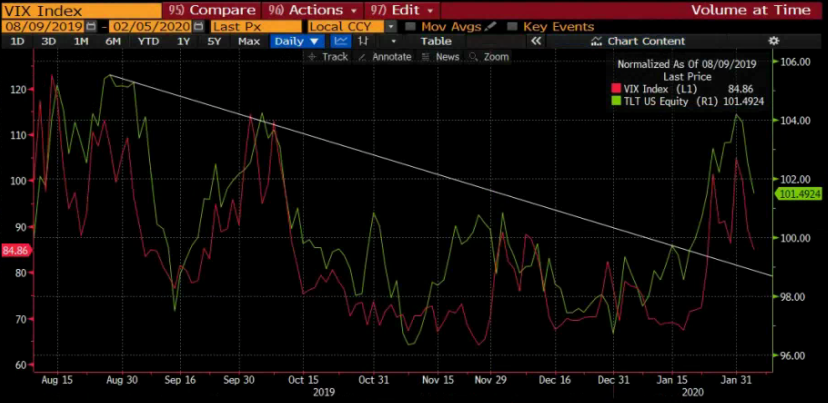 Over the last 6 months or so, there has been a real correlation between treasury prices and fear or volatility. So, what does this mean for market sentiment?